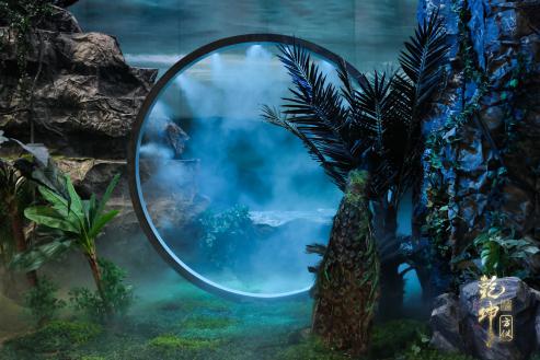 本次秀场的置景以及舞美,团队也做了创新与突破,也是自品牌成立以来,在国内秀场上呈现的最盛大的景别设计。将难以实现的自然景象,如山川河流、花鸟飞蝶、雨林植被、盘根古树,及多种栖息动物等元素(秀后由饲养员统一带回)搬置到场地内,景象壮阔,传递出一种对自然与和平的向往,赋予这个世界新的生命力。